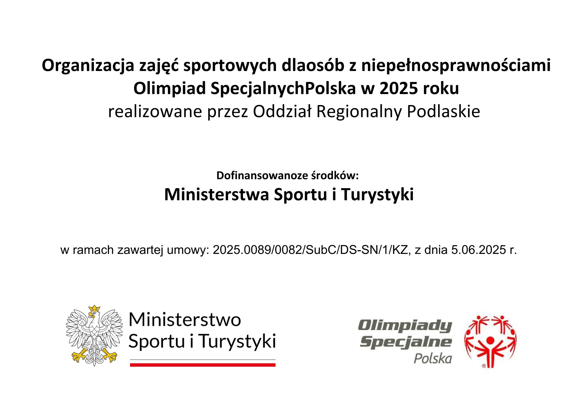 Niezmiernie miło Nam poinformować, iż IV Ogólnopolski Mityng Kolarski Olimpiad Specjalnych i XIV Ogólnopolskie Regaty Kajakowe Olimpiad Specjalnych, które odbędą się 06-08 czerwca 2025r. w Białymstoku patronatem honorowym objął Marszałek Województwa Podlaskiego Pan Łukasz Prokorym.